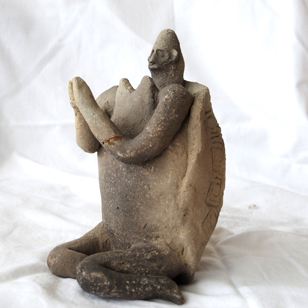 タイ・ウドンターニー県のバンチェン村から先史時代の埋葬遺跡が発見されました。何層にも重なり合った埋葬群から多数の副葬品が出土されました。紀元前1世紀前後に作られたものと言われています。土偶もたくさん発掘されていますが、写真のような動物と合体したようなものはあまり類型をみることはできません。どういう思いで作られたのか、聞きたくなる不思議な土偶です。